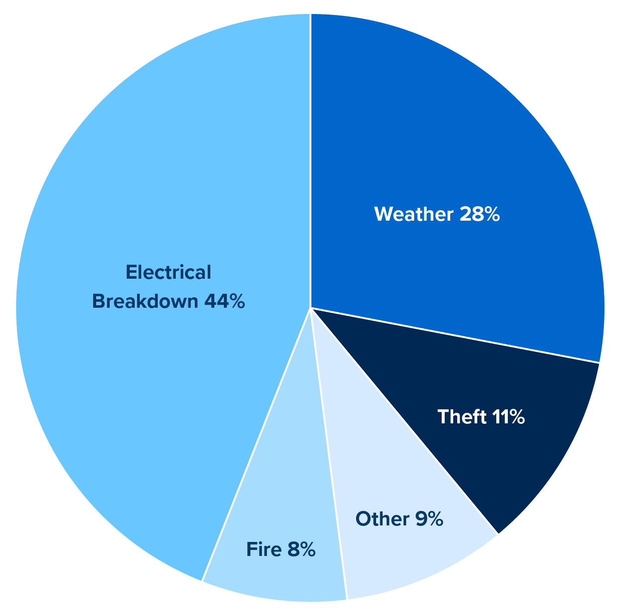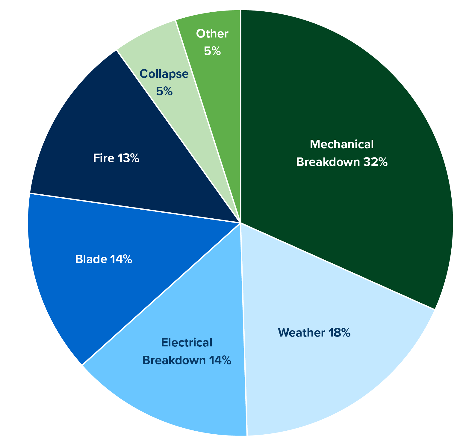 Above shows onshore wind loss by occurrence. The most severe losses are typically wind turbine generator (WTG) collapses or up-tower fire/electrical breakdowns.